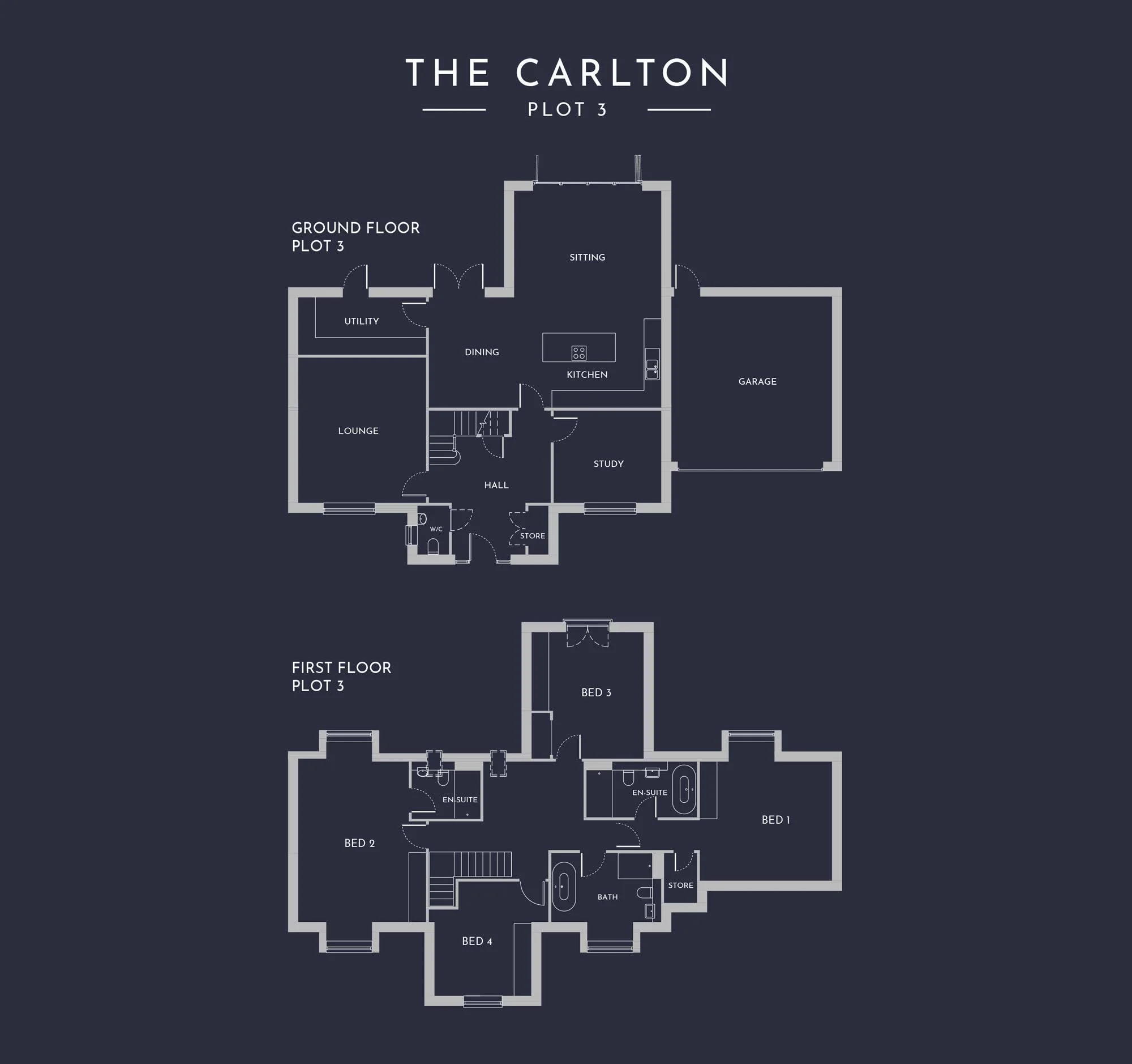 Upstairs, The Carlton features four double bedrooms, two ensuites, and a main bathroom. The master suite, accessed via a private passage, ensures seclusion. The rear gardens offer private spaces with countryside views.